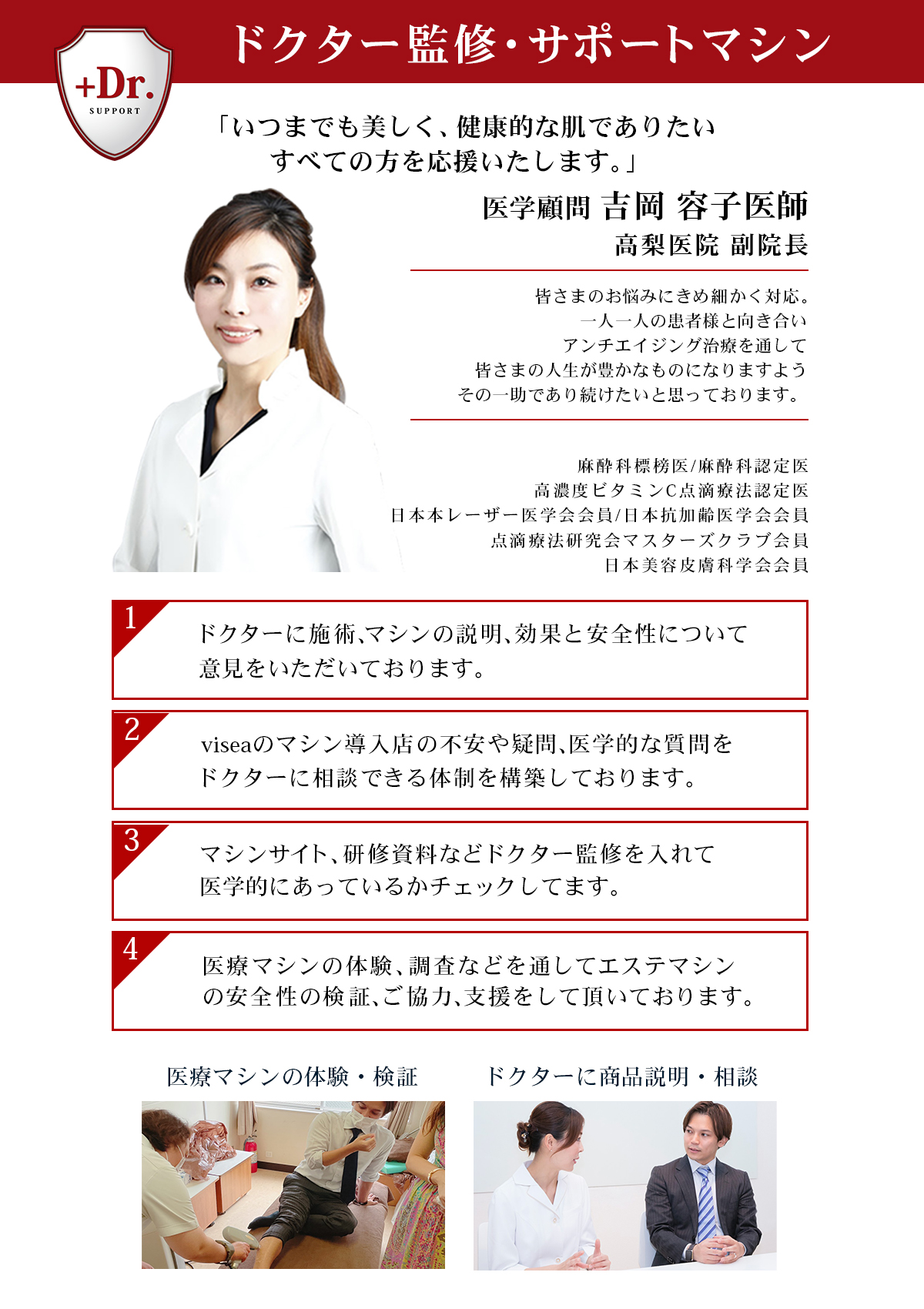 安全性を重視した製品を提供、アフターフォロー向上ためドクターを顧問に招いております。クリアスキンネオは安心安全の日本クオリティです。