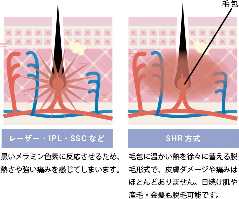 今までの成長期にアプローチする脱毛方法とは違い、毛包にアプローチできるため、今までの問題を解決!